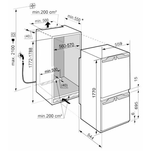 | Высота для встраивания (см) | 177,2 |