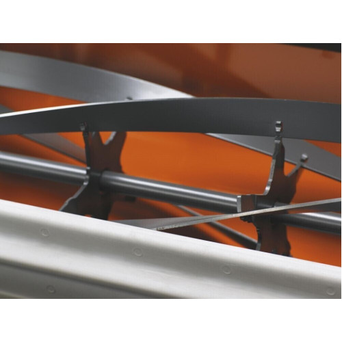 Плавная регулировка высоты кошения в широком диапазоне. Большая максимальная высота кошения. Возможность работы в высокой траве. Пластиковые колеса с резиновой шиной. Стальная дека. Травосборник в комплект не входит.