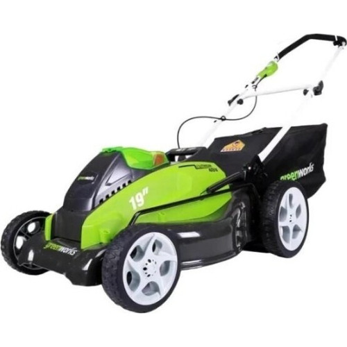 Газонокосилка аккумуляторная G-MAX 40V GreenWorks G40LM45 вполне сопоставима по своим характеристикам с бензиновыми газонокосилками и имеет ширину скашивания 45 см. Она обладает функцией мульчирования, сбора травы в травосборник и функцией бокового выброса травы. Приемник травы объемом 50 литров, имеет металлический каркас и индикатор заполнения травой. У косилки небольшой вес, а уровень шума и вибрации на порядок ниже бензиновых аналогов, что делает работу с газонокосилкой легкой, приятной и удобной. Для надежности корпус газонокосилки выполнен из специального “мягкого” пластика, при попадание небольших камней в корпус он точно не потрескается. Есть регулировка высоты скашивания от 20 мм до 70 мм со стальным приводом на все колеса. Важным элементом газонокосилки является схема защиты двигателя от механических повреждений, например, при наезде на твердые предметы. Автономное время работы - до 600 м² от 4 А.ч. батареи (примерное время работы, и зависит от некоторых факторов). Для защиты от случайного включения, предусмотрен специальный ключ безопасности и кнопка-предохранитель. Для удобства хранения ручка газонокосилки складывается. Особенно рады такой новинке будут женщины потому, что её не нужно заполнять бензином, обслуживать и вообще совершать какие либо манипуляции, известные, как правило, только мужчинам. А если еще подумать о своем здоровье (отсутствие выхлопов СО2) и экологии, то эта косилка будет самым разумным вложением средств. Газонокосилка работает от аккумуляторной батареи G-MAX 40V (2 А/час или 4 А/час,), которую можно использовать с другими устройствами из линейки 40V (15+ устройств). От младших моделей эта газонокосилка отличается более широкой полосой скашивания (45 см.), наличием функции бокового выброса травы и увеличенным мешком для сбора травы. []Вес 22.20 кг