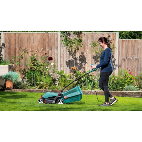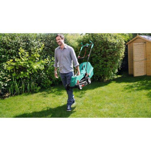 Высокооборотистый двигатель в два счета приведет ваш газон в порядок. Косите с меньшими затратами сил и максимальным контролем. Ручки Bosch ErgoFlex уменьшают нагрузку на руки и спину, обеспечивая оптимальное положение тела при скашивании.Направляющие для травы на корпусе косилки ускоряют обработку газона, обеспечивая с первого раза аккуратное скашивание травы по краю газона. []Ширина 610 мм []Высота 378 мм []Глубина 400 мм []Вес 13.34 кг