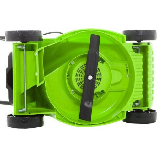 Газонокосилка электрическая 1200W GREENWORKS GLM1232 - на этой модели установлен мощный двигатель на 1200 Ватт, а ширина скашивания 33 см. Травосборник объемом 25 литров, имеет гибридное строение — надежный каркас и складывающийся мешок. Таким образом им удобно пользоваться и при этом он не занимает много места при хранении. Основным достоинством этой газонной косилки являются: малые габариты и легкий вес, всего 6,9 кг. Это позволяет работать на небольших извилистых участках с максимальным комфортом.Модель оснащена осевой 3-х уровневой регулировкой высоты скашивания — 20/40/60 мм. Для экономии пространства при хранение ручка газонокосилки складывается. Конечно, обязательным элементом безопасности является кнопка-предохранитель от случайного включения. Для безопасной работы газонокосилка оснащена ключом безопасности. []Ширина 600 мм []Высота 290 мм []Глубина 380 мм []Вес 6.90 кг