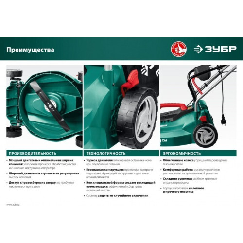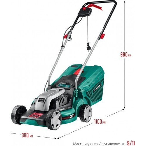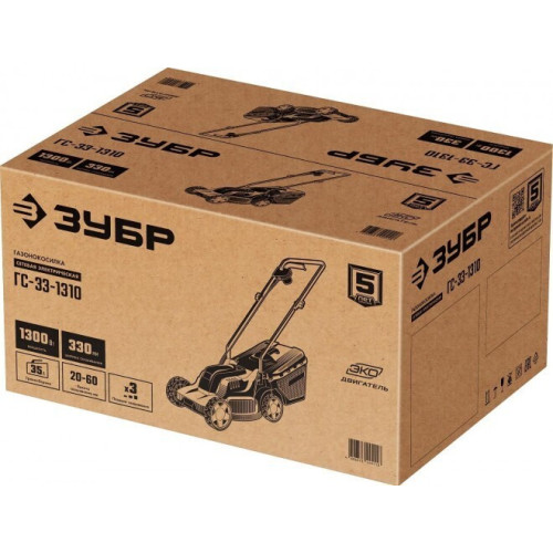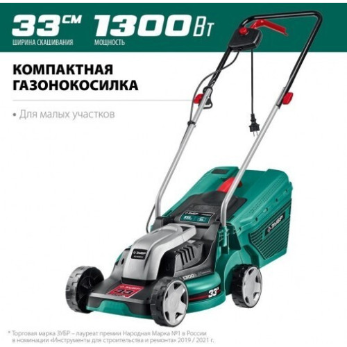 Газонокосилка электрическая ЗУБР ГС-33-1310 предназначена для срезания и сбора травы на ровной площади малых и средних приусадебных участках. []Ширина 310 мм []Высота 400 мм []Глубина 560 мм []Вес 8.25 кг