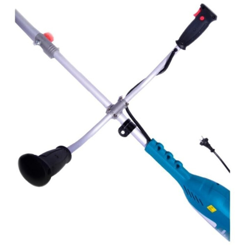 тип триммера: переносной мощность электродвигателя 1400 Вт ширина скашивания 42 см режущий элемент триммера: леска и нож, леска 2 мм конструкция штанги: прямая форма рукояти: Т-образная (велосипедная) плечевой ремень наличие колес: нет вес 5.2 кг