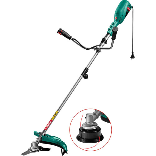 Универсальный инструмент на участке. Способна заменить газонокосилку и триммер, так как оснащается катушкой с леской (для мягкой растительности) и ножом (для грубой растительности). Большая мощность двигателя позволяет косить довольно густую и грубую растительность, а небольшие размеры - добраться до самых труднодоступных мест. Преимущества * Отличная замена газонокосилке при небольшой площади газона * Прекрасная альтернатива бензиновой косе: меньшая мощность при той же режущей способности, отсутствие необходимости постоянной покупки ГСМ и приготовления смеси * Особенно мощный двигатель, леска диметром 2 мм или режущий нож позволят косить даже самую грубую растительность, вплоть до кустов * Возможность установки двух видов режущего инструмента - лески и ножа - делают изделие универсальным * Верхнее расположение двигателя защищает его от влаги и выбросов при кошении * Гибкий трос в приводе катушки предохраняет двигатель от ударных и чрезмерных нагрузок * Идеальная развесовка (благодаря верхнему расположению двигателя) и плечевой ремень увеличивают маневренность и облегчают эксплуатацию * Разъемная штанга обеспечивает удобство хранения и транспортировки * Увеличенная ширина кошения леской * Полуавтоматическая катушка для упрощенной регулировки длины лески * Регулируемая по высоте и углу наклона дополнительная рукоятка