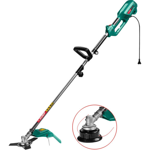 Универсальный инструмент на участке. Способна заменить газонокосилку и триммер, так как оснащается катушкой с леской (для мягкой растительности) и ножом (для грубой растительности). Большая мощность двигателя позволяет косить довольно густую и грубую растительность, а небольшие размеры - добраться до самых труднодоступных мест * Отличная замена газонокосилке при небольшой площади газона * Прекрасная альтернатива бензиновой косе: отсутствие необходимости постоянной покупки ГСМ и приготовления смеси * Мощный двигатель, леска диметром 2 мм или режущий нож позволят косить даже самую грубую растительность, вплоть до кустов * Возможность установки двух видов режущего инструмента - лески и ножа - делают изделие универсальным * Верхнее расположение двигателя защищает его от влаги и выбросов при кошении * Гибкий трос в приводе катушки предохраняет двигатель от ударных и чрезмерных нагрузок * Идеальная развесовка (благодаря верхнему расположению двигателя) и плечевой ремень увеличивают маневренность и облегчают эксплуатацию * Разъемная штанга обеспечивает удобство хранения и транспортировки * Полуавтоматическая катушка для упрощенной регулировки длины лески * Регулируемая по высоте дополнительная рукоятка