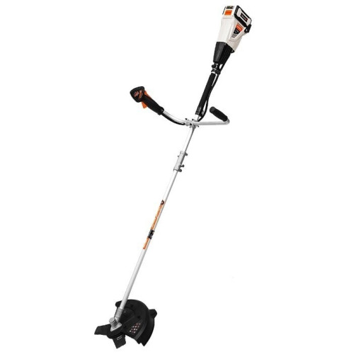 тип триммера: переносной ширина скашивания 32 см режущий элемент триммера: леска и нож, леска 2 мм конструкция штанги: прямая форма рукояти: Т-образная (велосипедная) плечевой ремень наличие колес: нет вес 4.3 кг