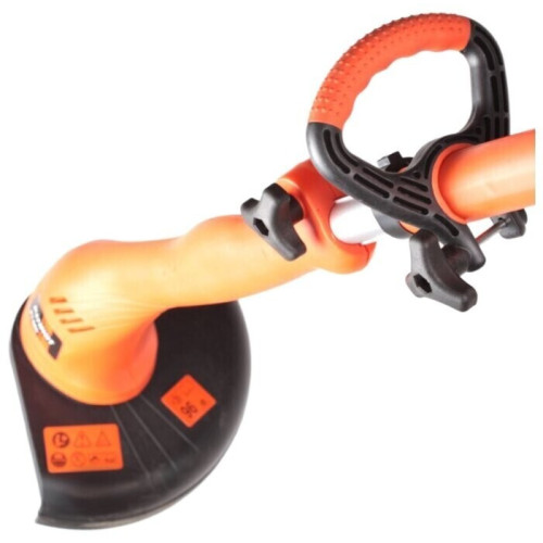 тип триммера: переносной мощность электродвигателя 480 Вт ширина скашивания 25 см режущий элемент триммера: леска, 1.60 мм конструкция штанги: прямая форма рукояти: D-образная наличие колес: нет вес 2.3 кг