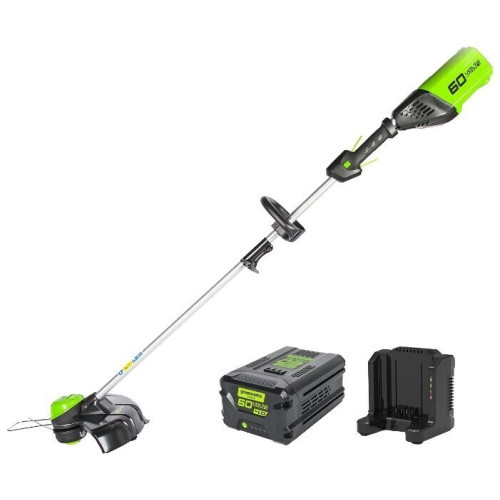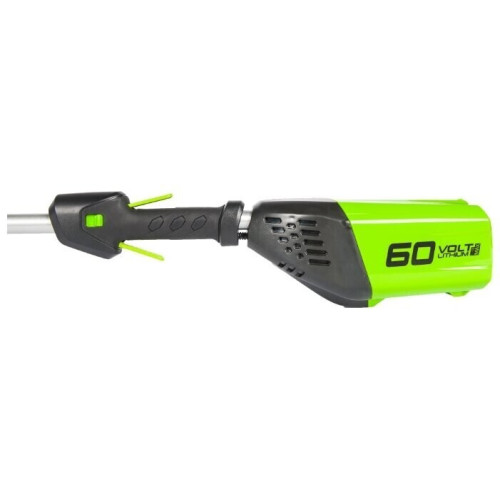 Триммер аккумуляторный Greenworks GD60LTK4 60V - садовый инструмент из новой профессиональной линейки Greenworks 60V, который станет отличной заменой электрическому или бензиновому триммеру. Он легко справиться с высокой или густой травой. Назначение этого садового триммера - подрезка травы в труднодоступных местах, грубый покос высокой травы или кустарника. Триммер оснащается современным индукционным или бесщеточный двигателем DigiPro™, который не уступает в своих характеристиках бензиновому двигателю, но не загрязняет окружающую среду выхлопами СО, имеет повышенный крутящий момент, низкий уровень шума и вибрации. Важным преимуществом электрического двигателя является его простота эксплуатация. Вам не нужно его заводить, включение происходит нажатием одной кнопки. Он прост в обслуживании, ему не нужно менять фильтры или масло, свечи. Нет необходимости смешивать бензин с моторным маслом. А в сравнение со стандартным щеточным двигателем, бесщеточный двигатель до 10 раз надежнее. Для долговечной службы двигатель оснащается системой защиты от перегрузок.