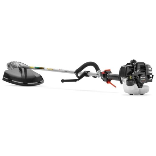 тип триммера: переносной двухтактный двигатель емкость топливного бака 0.6 л площадь скашивания 2500 м² режущий элемент триммера: леска и нож, леска 2.40 мм конструкция штанги: прямая форма рукояти: D-образная плечевой ремень вес 4.3 кг
