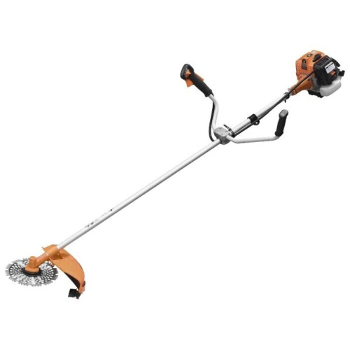 тип триммера: переносной мощность ДВС 1 л.с. двухтактный двигатель емкость топливного бака 0.7 л режущий элемент триммера: леска и нож, леска 2.40 мм конструкция штанги: прямая форма рукояти: Т-образная (велосипедная) плечевой ремень наличие колес: нет вес 6.9 кг