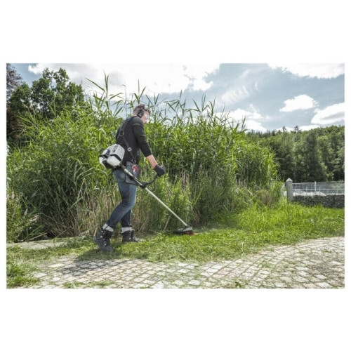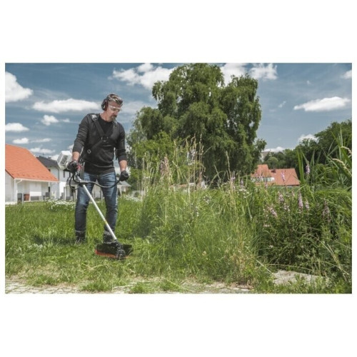 тип триммера: переносной мощность ДВС 1.2 л.с. двухтактный двигатель емкость топливного бака 0.8 л ширина скашивания 41 см режущий элемент триммера: леска и нож, леска 2.40 мм конструкция штанги: прямая форма рукояти: Т-образная (велосипедная) плечевой ремень наличие колес: нет вес 7.3 кг