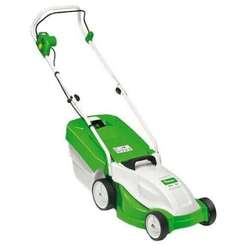 колесная газонокосилка электрический двигатель (1200 Вт) от сетевого кабеля ширина / высота скашивания: 33 см / 25-65 мм площадь скашивания: 300 м² выброс травы в жесткий травосборник , назад вес: 13 кг