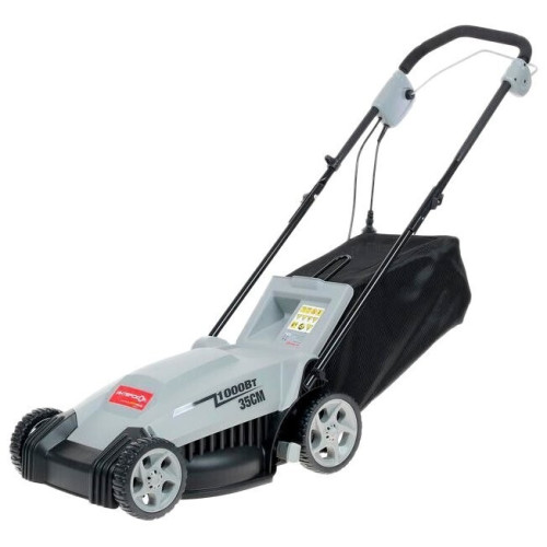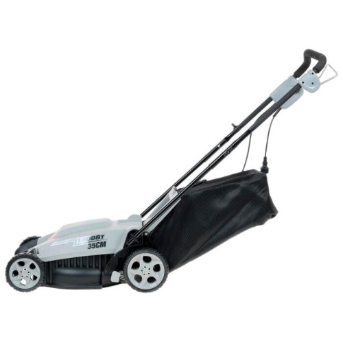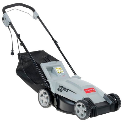 колесная газонокосилка электрический двигатель (1000 Вт) от сетевого кабеля ширина / высота скашивания: 35 см / 20-80 мм выброс травы в мягкий травосборник , назад мульчирование вес: 11.7 кг