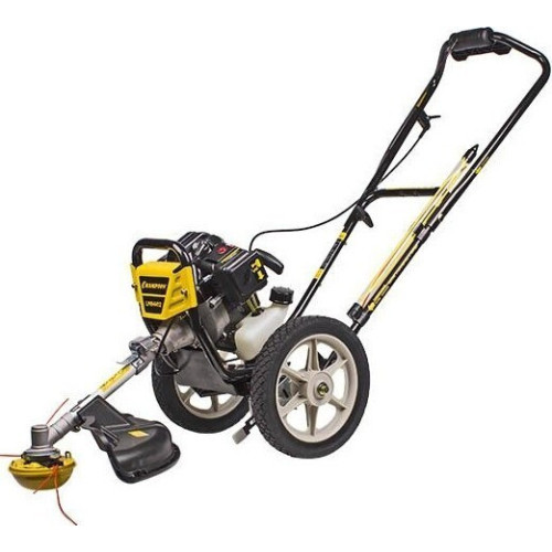 Газонокосилка бензиновая CHAMPION LMH 4412 – весьма интересно сконструированная модель для окашивания неровных участков площадью до 20 соток. Фактически эта модель - это тележка с колесами, к которой приделан обычный двухтактный триммер с укороченной штангой. Такая конструкция технологически легче и проще чем стандартные модели колесных триммеров, но при этом она отлично справляется со своей функцией - уменьшение нагрузки на оператора при работе. Двухтактный двигатель прост в эксплуатации и намного более дешев в ремонте. При этом двухтактный двигатель очень оборотистый, и, не смотря на свою небольшую мощность, показывает довольно хорошую производительность. Газонокосилка бензиновая CHAMPION LMH 4412 имеет без ремённую передачу крутящего момента под нужным углом, благодаря применению стального углового редуктора, перекочевавшего на этот инструмент от обычных бензиновых кос. В основании редуктора крепиться широкий защитный кожух для защиты оператора от летящей на большой скорости скошенной травы. Колесная тележка, на которую опирается конструкция, имеет плавный ход и хорошую проходимость по высокой траве, благодаря колесам большого диаметра. Газонокосилка бензиновая CHAMPION LMH 4412 так же оборудован центробежным сцеплением в виде муфты, позволяющим находиться в покое режущему элементу при заведенном двигателе, пока оператор не выжмет ручку газа. Благодаря двухтактному двигателю, модель можно применять на существенных склонах. []Ширина 450 мм []Высота 360 мм []Глубина 640 мм []Вес 20.80 кг