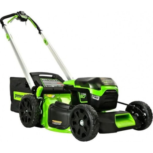 Газонокосилка самоходная аккумуляторная 60V GREENWORKS GD60LM51SP - полупрофессиональная газонокосилка отлично подойдет за уходом газона большой площади! Оснащена мощным бесщеточным двигателем DigiPro, что позволяет развивать лезвию косилки скорость вращения 2 800 об/мин. Функция ECO-Boost автоматически регулирует обороты двигателя. Благодаря ширине среза 510 мм вы сможете обрабатывать большие площади территории. Высоту кошения возможно менять в интервале от 2.5 см до 8 см. На корпусе установлен рычаг на семь положений для регулировки высоты уровня скашивания. Также газонокосилка имеет самоходный механизм с возможностью регулировки скорости перемещения в диапазоне 0,7-1,35 м/с. В газонокосилку встроены два слота для аккумуляторов с функцией переключения. На корпусе газонокосилки размещено два LED фонаря, что делает возможным эксплуатацию данного устройства в условиях слабой освещенности. Для защиты от внезапного включения косилка оснащена ключом безопасности. Для более долгой службы дека косилки изготовлена из стали, а корпус из особого