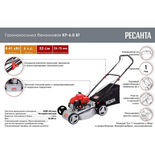 Газонокосилка бензиновая Ресанта КР-6.0 БТ