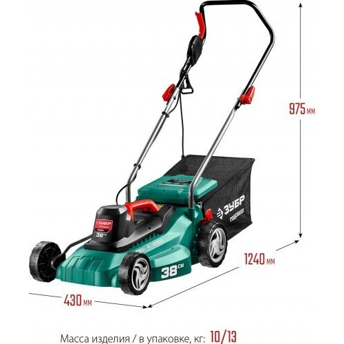 Газонокосилка электрическая ЗУБР ГСЦ-38-1700 предназначена для срезания и сбора травы на ровной площади малых и средних приусадебных участках. []Ширина 300 мм []Высота 450 мм []Глубина 690 мм []Вес 12.25 кг
