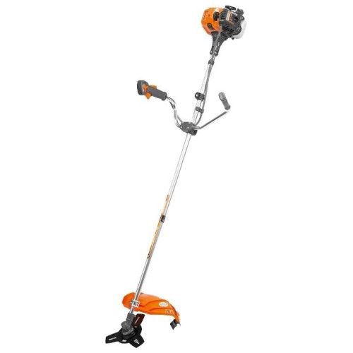тип триммера: переносной мощность ДВС 1.6 л.с. двухтактный двигатель емкость топливного бака 0.7 л ширина скашивания 42 см режущий элемент триммера: леска и нож конструкция штанги: прямая форма рукояти: Т-образная (велосипедная) плечевой ремень наличие колес: нет вес 7.15 кг