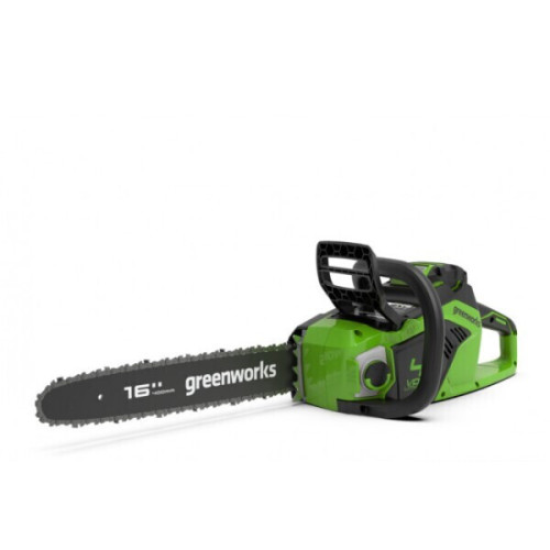 Цепная аккумуляторная пила GreenWorks 40 вольт (модель GD40CS18) - полупрофессиональная цепная пила, которая отлично подойдет для полноценного ведения дачного хозяйства. Ее надежный бесщеточный двигатель сопоставим по мощности с бензиновыми аналогами на 1,5 л/сил. При этом электродвигатель пилы GreenWorks абсолютно экологичен, имеет высокий крутящий момент (пилит быстрее бензинового аналога), имеет низкий уровень шума и вибраций, а так же прост в эксплуатации потому, что не требует подготовки масло-бензиновой смеси и какого-либо обслуживания. Включение пилы производится одной кнопкой. Замена и установка цепи не требует инструмента. Данная модель обладает компактными размерами, небольшим весом и долгим автономным временем работы (до 110 спилов от 4 А/час батареи), что делает ее незаменимым помощником на даче и в лесу. Пила оснащена шиной (40 см) из кремнистой стали. Масляный бачок для смазки цепи имеет прозрачный корпус, чтобы вы всегда могли следить за уровнем масла. Для безопасности предусмотрен предохранитель включения и механический тормоз цепи. Для долговечной работы двигатель имеет защиту от перегрузки. Пила работает от аккумуляторной батареи G-MAX 40V, которую можно использовать с другими устройствами линейки 40V (15+ устройств). Преимущества модели: * Мощный бесщёточный двигатель DigiPro; * Компактный размер и малый вес; * Скорость вращения цепи 20 м/с; * Механический тормоз цепи; * Время автономной работы до 110 спилов от 4 А/час батареи; * Прорезиненная рукоятка; * Низкий уровень вибрации <2,5 м/с2; * Низкий уровень шума 92 ДБ; * Ключевая замена и натяжение цепи; * Прозрачный масляный бачок (180 мл) - для удобного контроля уровня масла; * Предохранитель включения и тормоз цепи; * Защита двигателя от перегрузок; * Работа от 40V аккумулятора совместимого с другими устройствами из линейки 40V; Состав комплекта: * G-MAX 40V аккумуляторная цепная пила 40 см; * Аккумулятор 6 АЧ; * Зарядное устройство; * Руководство по эксплуатации; * Гарантийный талон.