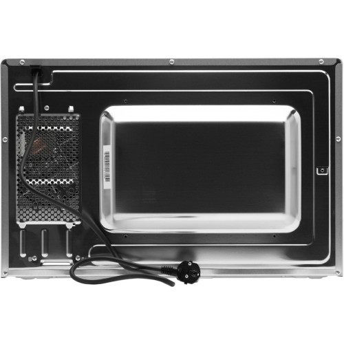 Камера встраиваемой микроволновой печи вместительностью 25 л оснащена покрытием из термостойкой эмали. Это исключительно прочный материал, который легко чистить. Он не боится нагрева даже в течение длительного времени. Навесная дверца открывается посредством нажатия на кнопку на фронтальной панели. Если вы забыли достать из морозильной камеры ингредиенты для приготовления обеда или ужина, не проблема – воспользуйтесь программой разморозки. Данная программа работает как по времени, так и по весу.