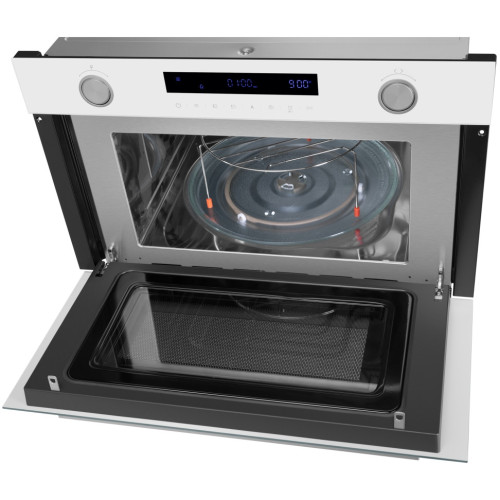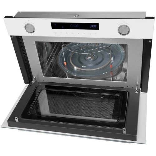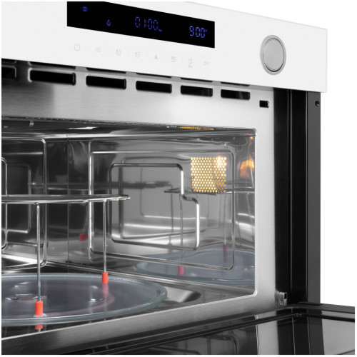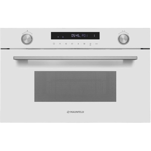 Встраиваемая микроволновая печь MAUNFELD MBMO349GW — это модель с рабочей камерой объемом 43 л. Получайте максимум удовольствия от приготовления. Встраиваемая микроволновая печь мощностью 2000 Вт. Передняя панель выполнена из стекла. Свет зажигается при открытии дверцы. Настройка программ и таймера осуществляется при помощи сенсорного дисплея. Работает в режимах: микроволны и гриль. Сочетание работы нагревательных элементов позволяет размораживать, греть жидкости, делать попкорн и деликатно подогревать готовые блюда. Разморозка Функция разморозки позволяет разморозить продукты, сохранив их свежесть и текстуру. Вы сможете насладиться великолепным вкусом мяса, птицы, рыбы, хлеба, пирожных и фруктов в любое время года. Разогрев Функция разогрева обеспечивает идеальную текстуру и цвет вашего блюда, благодаря чему оно выглядит удивительно аппетитным. Время приготовления продлевается на 30 секунд. Легкая очистка и долговечность Прочное покрытие из нержавеющей стали имеет гладкую поверхность, легко очищается без использования абразивных чистящих средств и, кроме того, не теряет цвет даже после длительной эксплуатации. Покрытие не подвержено коррозии, не царапается и служит долго. Комбинированное управление Кроме электронных поворотных регуляторов PUSH PULL в микроволновой печи используется современное сенсорное управление, обеспечивающее комфорт и наиболее точную регулировку параметров приготовления. Большой цифровой дисплей отображает всю необходимую информацию о времени, режиме и температуре приготовления. LED освещение Освещение внутренней камеры происходит на протяжении всего процесса: когда дверца открыта, при приготовлении и даже при нажатии паузы. В любой момент можно наблюдать за процессом. Функция защита детей При включении функции «Защита детей» панель управления заблокируется, и маленький непоседа не сможет включить прибор или изменить настройки приготовления. Все это позволит обезопасить маленьких поварят, а также прибор от нежелательного взаимодействия. Режим паузы Если в процессе приготовления необходимо временно приостановить процесс нагрева, то наиболее оптимальным решением будет выбор режима паузы, который позволяет сохранить все настройки и вернутся к приготовлению тогда, когда это необходимо.