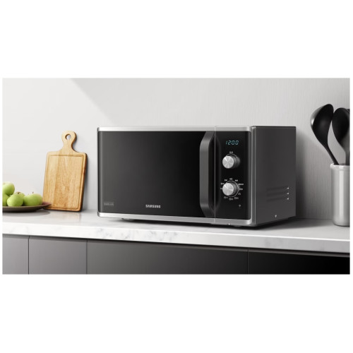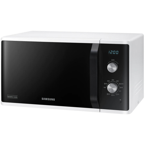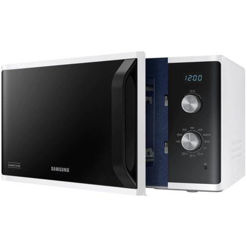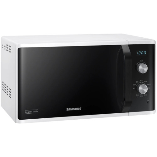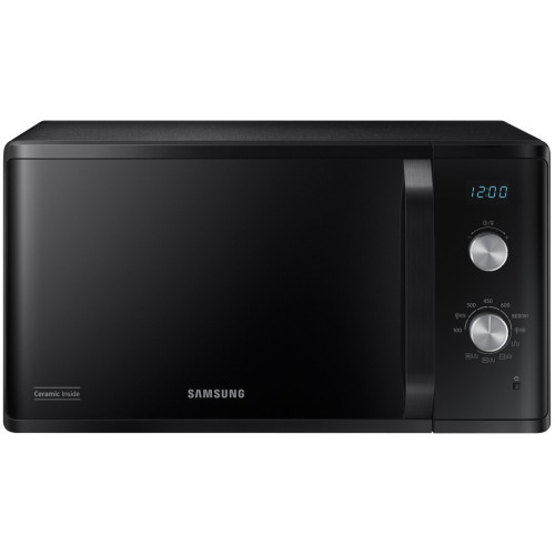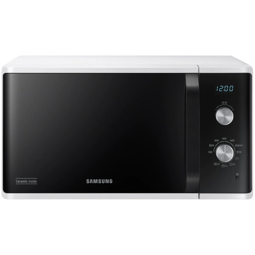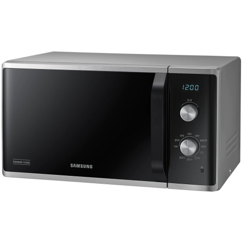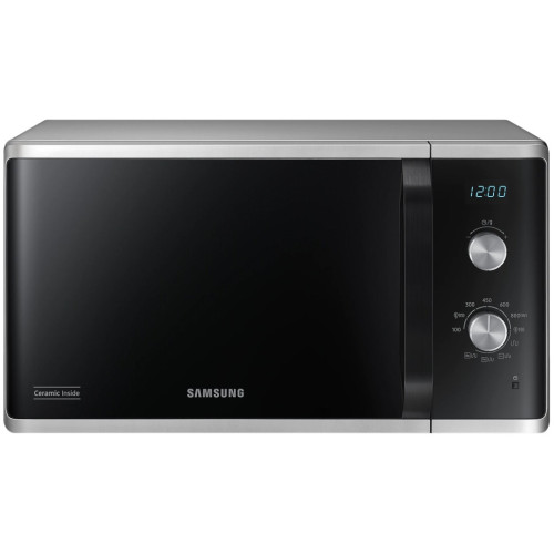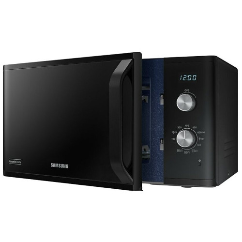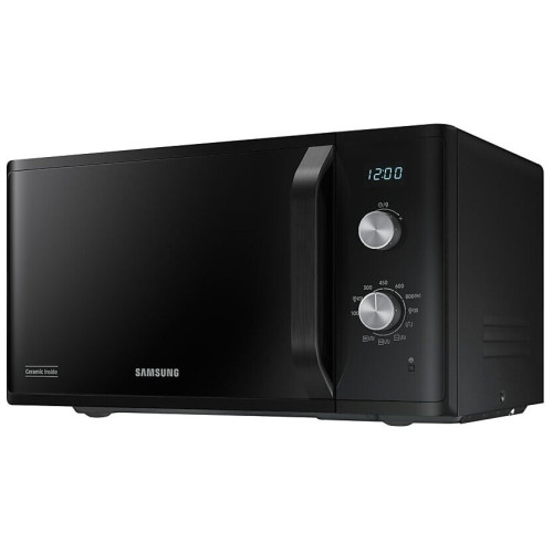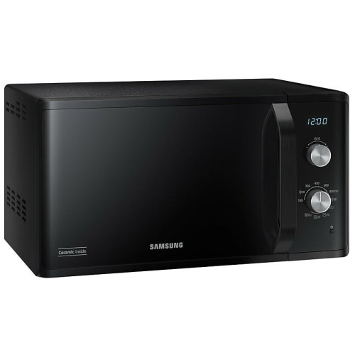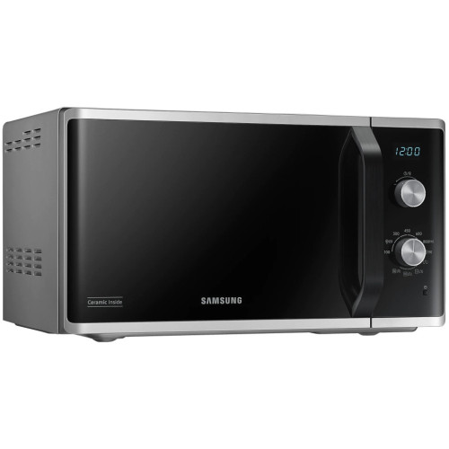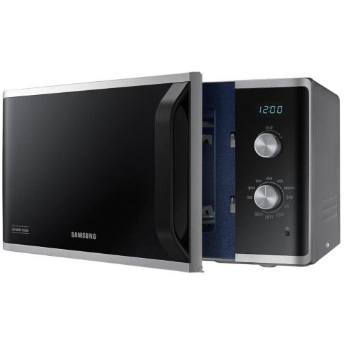 Микроволновая печь Samsung MG23K3614A с простым и понятным управлением позволяет не только быстро и равномерно разогревать, размораживать и готовить блюда за счет системы тройного распределения микроволн и мощного СВЧ-излучателя, но и формировать на продуктах румяную корочку при помощи верхнего гриля тэнового типа. Биокерамическое внутреннее покрытие камеры, на которое производитель предоставляет 10 лет гарантии, очень гладкое, устойчивое к воздействию высокой температуры и механическим повреждениям. Оно не царапается, не выцветает со временем, легко очищается и предотвращает размножение бактерий.
