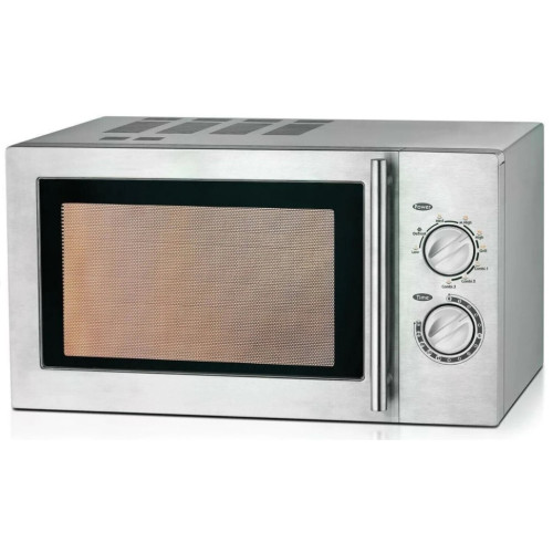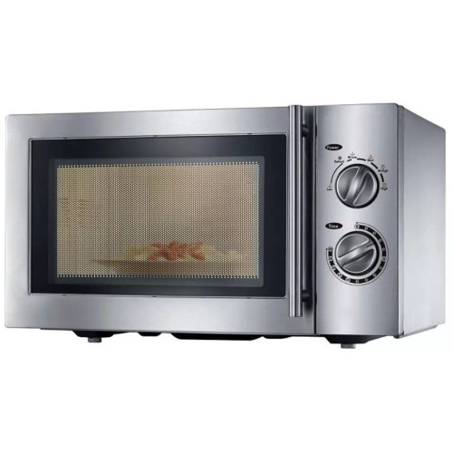 Микроволновая печь VIATTO Commercial P90D23SL-YR – это многофункциональный прибор для быстрого разогрева различных продуктов, размораживания полуфабрикатов, а также для приготовления широкого ассортимента блюд. Небольшие габариты позволяют существенно сэкономить кухонное пространство. Микроволновка оснащена грилем, таймером и электромеханической панелью управления. Корпус, ручка и камера изготовлены из нержавеющей стали. Преимуществом модели печи микроволновой является наличие 6 уровней мощности, что позволяет экономить электричество при приготовлении разных блюд. Наличие гриля расширяет возможности модели, а простая механическая система управления обеспечивает высокие темпы работы и отличается высокой надежности. Рабочая камера встраиваемой микроволновой печи имеет объем 23 литра и размеры камеры 340х320х220 мм, этого достаточно для разогрева пиццы. При эксплуатации бытовая техника работает практически бесшумно. Печь СВЧ рекомендуется к применению на предприятиях общественного питания и торговли всех типов, а также в домашних условиях. Дополнительные характеристики: - Объем камеры 23 л - Количество уровней мощности: 6 - Потребляемая мощность: 1,4 кВт - Мощность на выходе: 0,9 кВт.
