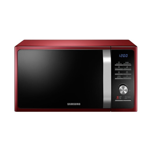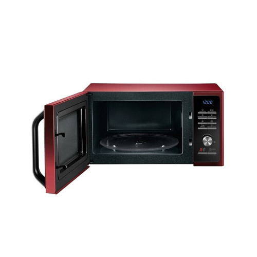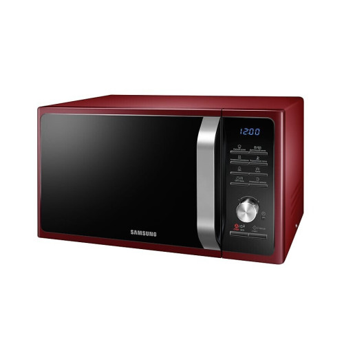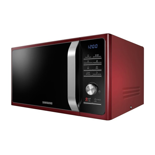 Микроволновая печь Samsung MG23F301TQR – компактный прибор для кухни. Его внешний корпус выполнен в красном цвете с черной панелью управления. Емкость нагревательной камеры – 23 л. Ее объем рассчитан для подогревания и готовки в печке 1 порции блюда. Поверхность камеры покрыта эмалью, что исключает попадание во внутреннюю конструкцию устройства загрязняющих остатков пищи. Мощность излучаемых СВЧ-печью микроволн – 800 Вт. В этом устройстве доступна ступенчатая регулировка ее уровней. Это способствует экономному расходу электроэнергии. В изделии такой модели доступны дополнительные функции, делающие процесс приготовления пищи более удобным. Среди них – встроенная подсветка, звуковой сигнал, равномерное распределение микроволн и блокировка от детей. Благодаря этим конструкционным особенностям пища подогревается одинаково со всех сторон, хозяйка может наблюдать за процессом готовки, а малыш не получит свободного доступа к технике.