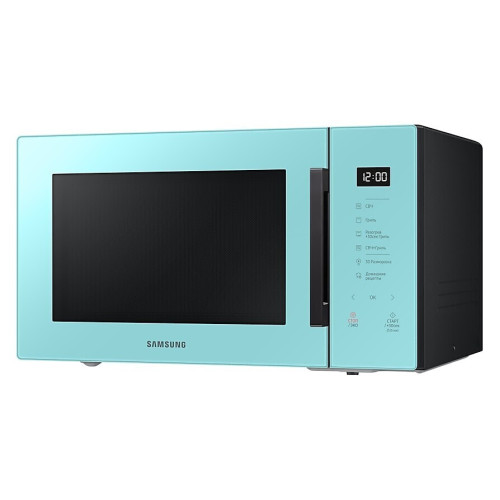 Микроволновая печь Samsung MG30T5018AN представлена в бирюзовом корпусе с черными вставками. Камера вмещает 30 л и дополняется биокерамической эмалью для простого ухода за внутренними стенками. Допускается работа в комбинированном, режиме гриля или микроволн. Прибор Samsung MG30T5018AN/BW оснащен режимами автоматического разогрева блюд и размораживания продуктов, 21-й программой, функцией отключения звукового сигнала. Предусматривается наличие дисплея с часами, сенсорного управления и системы блокировки от детей. Комплектация дополнена вращающимся кольцом со стеклянным поддоном на 31.8 см и решеткой для гриля.