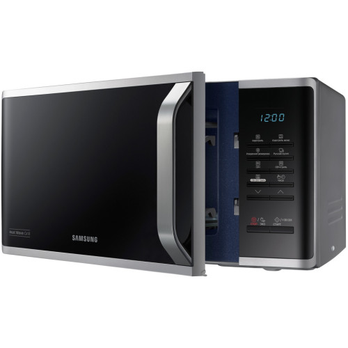 Samsung MG23K3573AS – стильная микроволновая печь, которая хорошо вписывается в интерьер современной кухни. С её помощью можно быстро приготовить или подогреть пищу, разморозить продукты. Надёжная защита от детей не позволит балующемуся ребёнку включить устройство без присмотра родителей или изменить параметры включённой программы приготовления. Микроволновка оснащена мощным грилем, позволяющим готовить блюда из мяса и рыбы с румяной аппетитной корочкой. Разработчики предусмотрели несложную электронную систему управления и цифровой дисплей, на который выводится важная информация. Владелец может использовать 20 программ автоматического приготовления и 4 режима автоматического размораживания, чтобы сэкономить время. Внутреннее покрытие микроволновой печи изготовлено из прочной и гигиеничной биокерамики, поэтому уход за ней будет особенно простым и не займёт много времени.