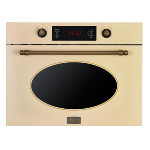 Микроволновая печь с функцией духового шкафа KMI 482 RB из ретро-коллекции «Provence» выполнена в цвете «слоновая кость». Сочетание нижнего нагрева, конвекции, гриля и микроволн создает 9 различных режимов, которые позволяют готовить очень сложные блюда. 15 предустановленных программ существенно упрощают приготовление гарниров, супов, выпечки, мяса и рыбы. Яркий LED-дисплей с индикацией режима и времени продолжительности позволяет контролировать процесс. Управление производится при помощи сенсорных кнопок и поворотных регуляторов. Трехслойное остекление предохраняет фронтальную поверхность от перегрева. Блокировка «от детей» защищает от случайной смены настроек. Ключевые преимущества: * 15 автоматических программ * Классический дизайн * Функция «Защита детей»