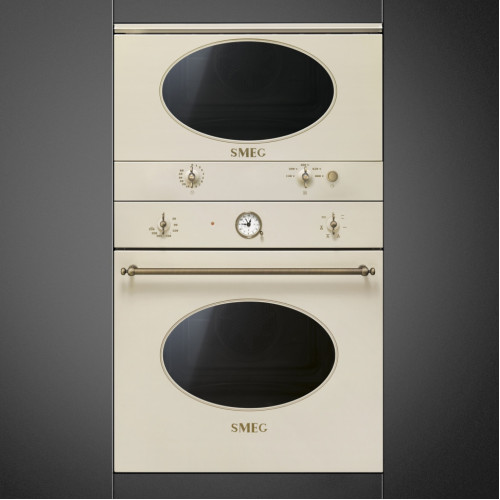 Микроволновая печь SMEG MP822PO имеет все необходимые функции — от разогрева до многоэтапной готовки. Благодаря встраиваемой конструкции она не занимает много места. Внутренняя камера выполнена из нержавеющей стали. Поворотные переключатели Coloniale, изготовленные из латуни, позолочены. Прибор имеет откидной гриль. Печь оснащена LED-дисплеем. Имеет функцию быстрого старта. Может размораживать продукты по времени и весу. Электронный программатор предусматривает таймер, отсрочку запуска и автоматическое выключение. Прибор оповещает о готовности блюда звуковым сигналом. Печь оснащена тангенциальной системой охлаждения. Автоматически отключается при открытой дверце.