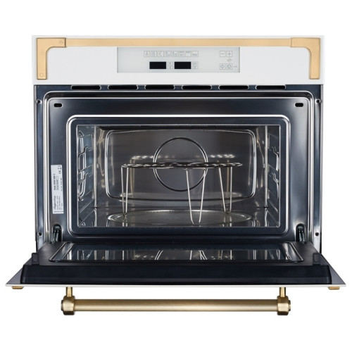МЕТАЛЛИЧЕСКАЯ ФУРНИТУРА Фурнитура микроволновой печи из металла ручной работы. Индивидуальный подход к изготовлению каждого элемента из металла, гарантирует надежность и долгий срок службы. Эстетичный дизайн элементов из металла подчеркивает микроволновую печь и создает особенный антураж всей кухни. ОТКИДНАЯ ДВЕРЦА Часто встраиваемая микроволновая печь не подходит по параметрам в вашу кухонную мебель, потому что открытие дверцы вправо или влево может быть ограничено пространством кухни и конструкцией мебели. Данная модель микроволновой печи имеет откидную дверцу, которая открывается так же, как и ваша духовка. Открытию дверцы ничего не мешает, а так же открытую дверцу можно использовать как подставку когда вы достаете горячую посуду после нагрева. БОЛЬШОЙ ДИАМЕТР ПОВОРОТНЫЙ СТОЛ Поворотный стол большого диаметра, позволяет разместить тарелки большого размера, несколько маленьких тарелок, а также посуду нестандартной формы. ВНУТРЕННЯЯ ОТДЕЛКА НЕРЖАВЕЮЩАЯ СТАЛЬ Внутренняя камера духовки выполнена из нержавеющей стали, долговечного и легко моющегося материала. ВЕРХНИЙ ТЭНОВЫЙ ГРИЛЬ Гриль в микроволновой печи, одновременно с стандартным режимом работы позволит не только разогреть пищу, но и добиться хрустящей корочки. Если вы будете готовить в микроволновой печи, то гриль расширят набор рецептов, которые вы могли бы использовать. Нагревательный элемент легко откидывается и дает доступ ко всей камере микроволновой печи для проведения уборки.