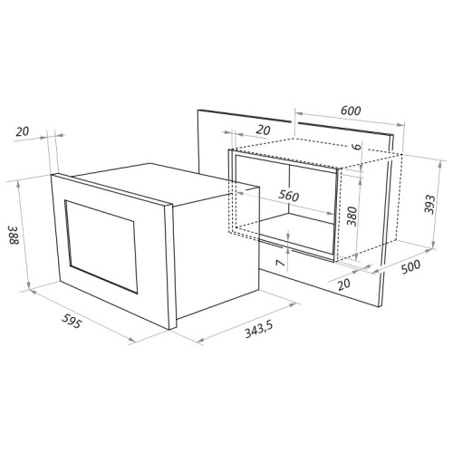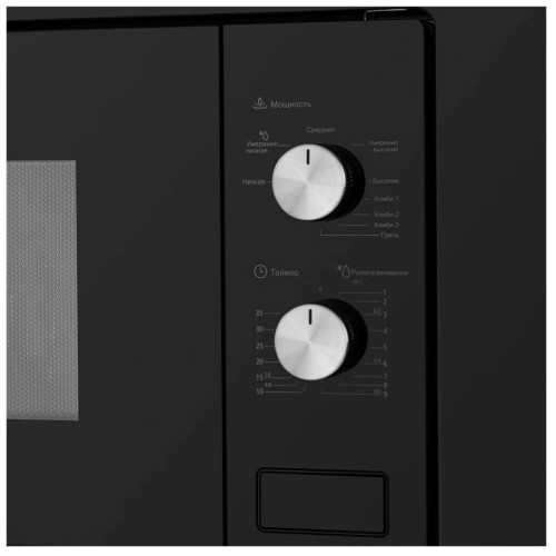 Общие характеристики Размеры (ШxВxГ): 59.5x38.8x34.3 cм; Вес: 15 кг; Внутренний объем: 20 л; Расположение: встраиваемая; Диаметр поддона: 245 мм; Внутреннее покрытие камеры: нерж. сталь; Режимы работыГриль: есть; Конвекция: нет; Мощность гриля: 1000 Вт; Мощность микроволн: 800 Вт; Тип управления: механическое; Переключатели: поворотные; Таймер: есть; Дополнительные программы: режим микроволн, режим гриля, комбинированный режим, размораживание по весу, таймер приготовления, стоп/сброс; Режим разморозки: есть; Дверца: навесная; Комплектация: вращающееся кольцо, стеклянный поддон, решётка для гриля, инструкция на русском языке, комплект для установки (трафарет, зажим, болты, ориентир); Открывание дверцы: кнопка; Цвет корпуса: черный; Другие функции и особенности: подсветка камеры, звуковой сигнал; Гарантия: 3 г.