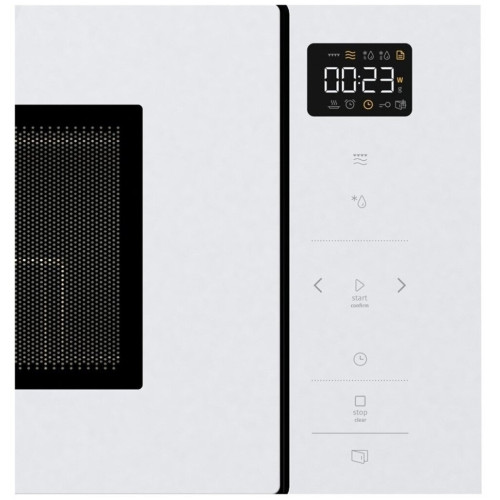 Основные характеристики - Тип: встраиваемая - Мощность микроволн: 900 Вт - Мощность гриля: 1000 Вт - Внутренний объем: 25 л - Внутреннее покрытие камеры: нержавеющая сталь - Поворотный стол: да - Диаметр поворотного столика: 31.5 см - Материал поворотного столика: стекло - Цвет: белый Управление - Тип управления: электронное - Переключатели: сенсорные - Тип дисплея: цифровой - Таймер: таймер выключения - Звуковой таймер: да Режим работы - Количество режимов работы: 3 - Режимы работы: гриль, 2 комбинированных режима микроволны + гриль - Число режимов нагрева: 5 - Гриль: есть - Тип гриля: кварцевый - Программа размораживания: по весу, по времени - Количество автоматических программ: 15 - Быстрый старт: да Безопасность - Блокировка панели управления: да - Блокировка от детей: да - Автоматическое отключение при открытой дверце: да Мощность и энергопотребление - Мощность подключения: 1450 Вт Дополнительная информация - Внутреннее освещение: да - Способ открывания дверцы: кнопка - Направление открывания дверцы: влево - Дополнительная информация: регулировка громкости звукового сигнала, очистка паром AquaClean Комплектация - Комплект поставки: решётка для гриля - Инструкция: да Размеры и вес - Высота: 38.8 см - Ширина: 59.5 см - Глубина: 40.1 см - Высота встраивания: 38 см - Ширина встраивания: 56 см - Глубина встраивания: 55 см - Вес: 19.5 кг