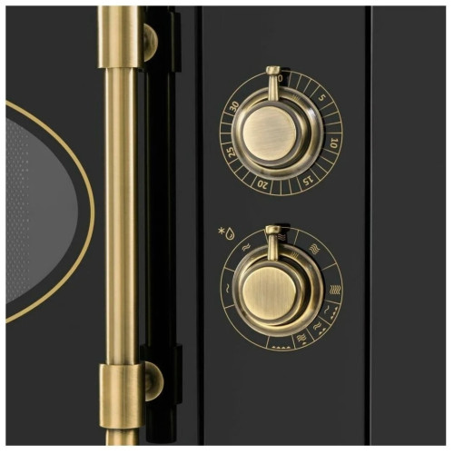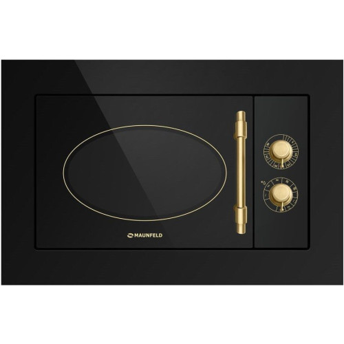 Преимущества микроволновых печей MAUNFELD: Большой объем — 20 литров Внутреннее покрытие камеры — нержавеющая сталь / керамическое покрытие дна (быстрее набирает рабочую мощность, занимает меньше места внутри рабочего пространства). Цельнометаллические, рустикальные ручки управления Тип: встраиваемая, электрическая 60см Объём, л: 20 Управление: механическое Входная мощность в режиме микроволн, Вт: 1080 Входная мощность в режиме гриля, Вт: 800 Особенности: без поворотного стола, фасад из прочного стекла, гриль, открытие дверцы в любом режиме, подсветка камеры, дверца навесная, механический таймер, звуковой сигнал, цельнометаллические ручки управления. Монтаж: возможность монтажа в навесной шкаф евростандарта глубиной 32 см. Комплектация: решётка для гриля, инструкция на русском языке, комплект для установки (трафарет, зажим, болты, ориентир) Цвет: черный/фурнитура матовое золото Габариты (ДхГхВ), мм: 592*330*376