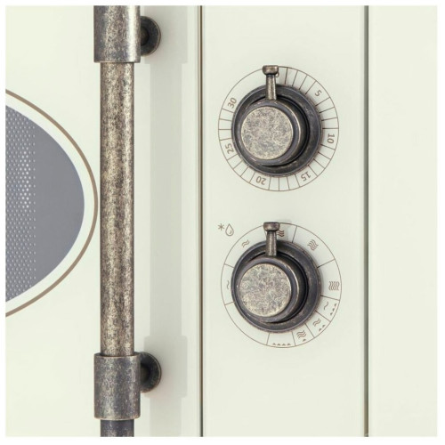 О модели Maunfeld JBMO.20.5GRIB Микроволновая печь Maunfeld JBMO.20.5GRIB в оттенке «слоновая кость» имеет фасад из прочного стекла и цельнометаллические, рустикальные ручки управления бронзового цвета. У модели помимо 5 режимов работы СВЧ есть кварцевый гриль, работающий как отдельно, так и в комби-режимах с микроволнами. Специальная технология без поворотного стола позволяет расширить пространство внутренней камеры, а также экономит время приготовления. Ключевые преимущества: Кварцевый гриль Механический таймер Решётка для гриля в комплекте Характеристики общие характеристики Тип встраиваемая Высота, см 37.6 Ширина, см 59.2 Глубина, см 33 Габариты, В х Ш х Г, см 37.6 х 59.2 х 33 Габариты ниши для встраивания, В х Ш х Г, см 22.4 х 56 х 31 Объем, л 20 дизайн Коллекция Retro Цвет слоновая кость Цвет фурнитуры бронзовый Материал крашенный металл / стекло Материал дверцы стекло Материал фасада стекло Открывание дверцы ручка Тип крепления дверцы навесной Материал рабочей камеры нержавеющая сталь / керамика Керамическое дно