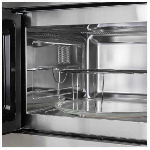 Основные характеристики - Тип: встраиваемая - Мощность микроволн: 900 Вт - Мощность гриля: 1000 Вт - Внутренний объем: 25 л - Внутреннее покрытие камеры: нержавеющая сталь - Поворотный стол: да - Диаметр поворотного столика: 31.5 см - Материал поворотного столика: стекло - Цвет: нержавеющая сталь Управление - Тип управления: электронное - Переключатели: кнопочные, поворотные - Тип дисплея: цифровой - Таймер: цифровой - Звуковой таймер: да - Часы: электронные Режим работы - Количество режимов работы: 3 - Гриль: есть - Тип гриля: кварцевый - Программа размораживания: по времени, по весу - Количество автоматических программ: 8 - Быстрый старт: да Безопасность - Блокировка панели управления: да - Блокировка от детей: да - Блокировка дверцы: да - Автоматическое отключения: да - Автоматическое отключение при открытой дверце: да Мощность и энергопотребление - Потребляемая мощность: 1450 Вт Дополнительная информация - Способ открывания дверцы: кнопка - Направление открывания дверцы: влево - Внутренний объем: 24-26 л Комплектация - Комплект поставки: 37643 - Инструкция: да Размеры и вес - Высота: 38.8 см - Ширина: 60 см - Глубина: 40.1 см - Высота встраивания: 38 см - Ширина встраивания: 56 см - Глубина встраивания: 50 см - Вес: 18.5 кг