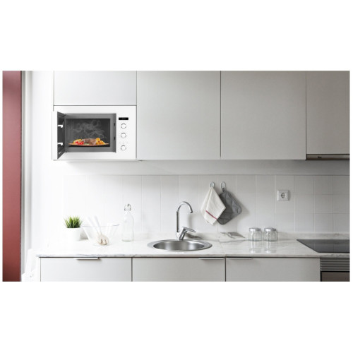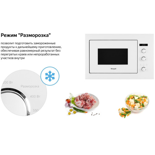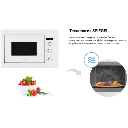 Weissgauff HMT-257 — встраиваемая микроволновая печь универсального белого цвета. Органично впишется в любой интерьер благодаря цветовому решению и возможности встроить прибор в шкаф. Объем рабочей камеры 25 литров. Открывается печь с помощью кнопки. Остальное управление производится с помощью сенсорных кнопок и поворотных переключателей. Прибор имеет 11 автоматических программ. Технология Spiegel равномерно распределяет энергию, что делает приготовление более качественным.