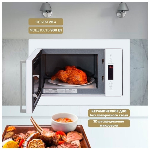 Встраиваемая Микроволновая печь HIBERG VM 8505 W в современном и стильном дизайне и цвете «белое стекло» идеально впишется в ваш интерьер! Объем камеры 25 л отлично подойдет для приготовления большого количества порций, а благодаря мощности 900 Вт и Технологии 3D-Surround приготовление пищи наступает значительно быстрее и эффективнее. Микроволны подаются в камеру снизу через керамическое гладкое дно без поворотного стола, а затем равномерно распределяются по всему пространству, тем самым воздействуют на пищу со всех сторон, делая процесс приготовления или размораживания продуктов оптимальным. Керамическое дно без поворотного стола простое в уходе и безопасно в использовании, а так же на такую поверхность можно поставить посуду любой формы и размера, разогревать или размораживать несколько блюд одновременно. Внутренняя камера модели так же с керамическим покрытием. Оно устойчивое к механическим повреждениям, не дает пригореть пище, легкое в очистке и уходе. Кроме того, главной особенностью такого новшества является то, что витамины и другие полезные элементы лучше сохраняются при готовке в СВЧ с керамическим покрытием. Наслаждайтесь любимыми блюдами, прям как из привычной духовки с помощью встроенного и абсолютно безопасного кварцевого гриля мощностью 1200 Вт, в комплекте предусмотрена металлическая решетка для жарки. Электронный тип управления позволяет легко пользоваться всем функционалом в данной модели, а на LСD-дисплее отображаются все настройки. Материал фасада СВЧ - закаленное стекло, навесная ручка металлическая. Особенности и преимущества: - современный дизайн; - Технология 3D-Surround; - керамическое дно без поворотного стола; - керамическое внутреннее покрытие; - кварцевый гриль; - таймер; - «замок от детей» С техникой HIBERG – вы профессионал на своей кухне!