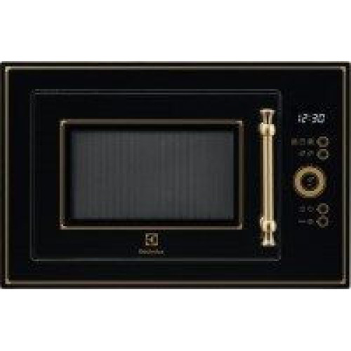 Печь Electrolux EMT25203OK в изысканном оформлении под старину с золотистыми деталями на черном фоне станет настоящим украшением кухни. Сенсорная панель управления гармонично сочетается с общим дизайном и интуитивно понятна в работе. Автоматические программы разморозки и приготовления сами рассчитают нужное время работы печи, опираясь на учет веса продуктов. Добиться еще большей сочности блюд можно, используя режим гриля. Кварцевый элемент мощностью 1000 Вт быстро прогревает продукты и компактно располагается в камере. Внутренняя камера выполнена из нержавеющей стали, благодаря чему она способна выдерживать длительный интенсивный нагрев. Блокировка от детей позволяет защитить технику от случайных нажатий кнопок и сбоев в работе.