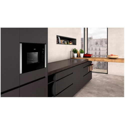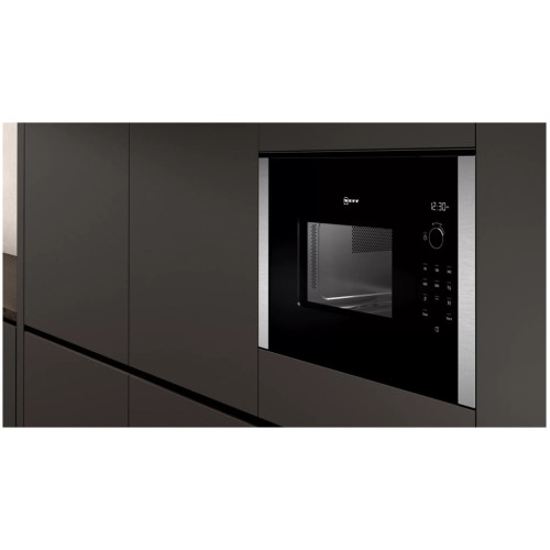 Neff HLAWD23N0 — встраиваемая СВЧ-печь с рабочей камерой объемом 20 литров. Модель оборудована навесной дверцей, открывание которой осуществляется посредством нажатия кнопки. Для установки времени приготовления предусмотрен утапливаемый переключатель, для выбора режимов нагрева — сенсорные кнопки. Небольшая глубина и высота позволяют встраивать эту модель в любом удобном месте. Внутренняя камера устройства изготовлена из надежной и легко моющейся нержавеющей стали. Пять уровней мощности микроволн помогут подобрать режим для любого блюда. Специальный режим предназначен для размораживания продуктов. Система охлаждения и автоматическое защитное отключение гарантируют безопасность во время работы.