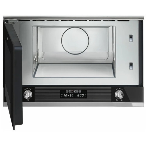 Встраиваемая микроволновая печь Smeg MP122N1 олицетворяет собой простоту, надёжность, комфорт и широкие возможности в приготовлении самых разнообразных блюд. Модель имеет строгий, лаконичный, функциональный дизайн, который украсит кухню и позволит выполнять ежедневную работу по приготовлению пищи с удовольствием. Поворотные переключатели с эффектом нержавеющей стали и подсветкой. Для комфортной работы с прибором предусмотрен электронный программатор: таймер, отсрочка включения, автоматическое выключение. Дополнительные функции: размораживание по времени, размораживание по весу.