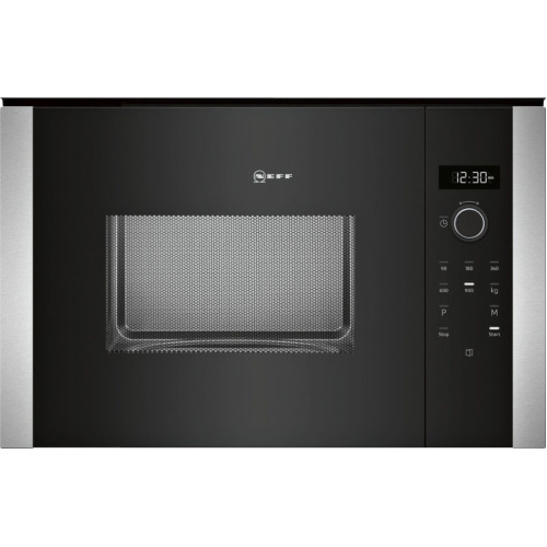 Встраиваемая микроволновая печь Neff HLAWD53N0 объёмом 25 литров работает только в режиме микроволн, которые имеют 5 уровней мощности. Управление осуществляется при помощи панели TouchControl и утапливаемого поворотного переключателя. Внутренняя поверхность камеры — из нержавеющей стали, смотровое окошко — из стекла.