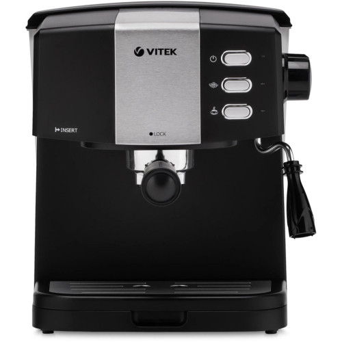 Кофеварка VITEK 1523-VT характеризуется стильным корпусом, для изготовления которого использовались нержавеющая сталь и качественный пластик. Такое современное оборудование поможет быстро приготовить ароматный бодрящий напиток на работе и дома. Производитель обеспечил управление при помощи удобных кнопок. Для приготовления понадобится молотый кофе. Для воды в кофеварке VITEK 1523-VT есть емкость объемом полтора литра. В оборудовании предусмотрена возможность одновременного приготовления двух порций напитка. Благодаря наличию функции подачи пара получится взбить молоко в пенку и сделать изысканный капучино. Пресс для уплотнения кофе в комплекте. Благодаря съемному поддону для капель за ним легко ухаживать. Итальянская помпа гарантирует долговечность кофеварки. Стильный дизайн поможет ей вписаться в любой современный интерьер.