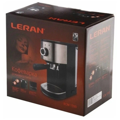Кофеварка LERAN ECM 1550 быстрого приготовит эспрессо или капучино. LERAN ECM 1550 – рожковая кофеварка со съемным лотком для сбора капель. Корпус модели выполнен из металла и пластика. Цвет кофеварки – черный. Объем модели – 1,2 л. LERAN ECM 1550 оснащена индикатором включения и функцией автоотключения Преимущества Наличие съемного лотка для сбора капель упрощает уход за устройством. Модель предназначена для приготовления эспрессо и капучино. Наличие двух краников позволяет одновременно готовить сразу 2 чашки кофе. Мощность устройства – 1,25 кВт. Специальный индикатор напоминает пользователю о том, что прибор включен. В случае простоя на протяжении трех часов кофеварка автоматически отключается.