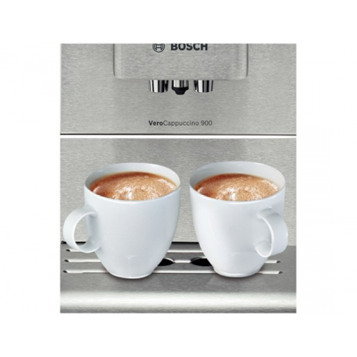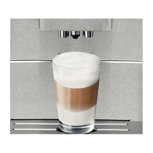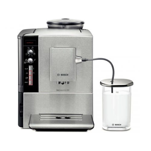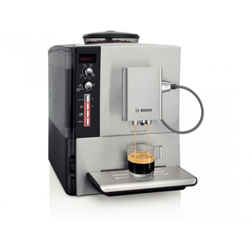 Bosch TES559M1 Мощность: 1600 Ватт Полностью автоматическое приготовление кофе или эспрессо нажатием одной кнопки SensoFlow System нагревательный элемент проточного типа с сенсорами температуры Технология заваривания AromaProConcept и уникальная конструкция поршня создают оптимальные условия в камере заваривания. Керамическая кофемолка CeramDrive AromaDoubleShot приготовление напитка двойной крепости Быстрый разогрев системы: первая чашка кофе за рекордно короткое время Давление помпы 15 бар Приготовление двух порций: отдельный помол зерен для каждой порции смачивание кофейного порошка перед началом варки MilkSteam Pro - интегрированный капучинатор, приготовление молочных напитков одним нажатием кнопки One touch Функция OneTouch для приготовления напитков капучино, латте маккиято Регулируемая высота дозатора кофе до 150 мм Выбор напитков: 2 х кофе, 2 х эспрессо, капучино, латте маккиято, кофе, горячая вода, эспрессо, молочная пена, теплое молоко Программа очистки капучинатора CreamCleaner Капучинатор легко разбирается, все части можно мыть в посудомоечной машине Полностью автоматическая программа удаления накипи и очистки системы (комбинированная программа calc`n`clean доступна) Программа автоматического ополаскивания при выключении, включении Съемный заварочный блок Single Portion Cleaning: автоматическое удаление остатков воды из подводящих трубок после каждого заваривания Установка крепости кофе: 6 ступеней Количество установок температуры: кофе (3 уровня) Регулируемая степень помола (многоступенчатая) Регулируемая высота дозатора 15 см (макс.), 9,4 см (миним.), и капучинатора нет Текстово-графический дисплей, управление с помощью двух поворотных регуляторов Выбор языка для сообщений на дисплее Индикация если контейнер для зерен или емкость для воды пустые Индикатор замены фильтра Съемная емкость для воды 1.7л Отсек для кофейных зерен с изоляцией для снижения шума 300гр Съемный отсек для кофейной гущи, дренажный поддон для капель, решетка Отсек для молотого кофе Автоматическое отключение прибора после заданного времени (0 Вт потребление энергии) Подсветка кнопок, подсветка чашек Отсек для кабеля (длина кабеля 1 м) Принадлежности в комплекте: мерная ложка, тест-полоска для определения жесткости воды, соединительная трубка для каппучинатора Дополнительные аксессуары: таблетки для чистки системы (TCZ6001), таблетки для удаления накипи (TCZ6002), фильтр для воды (TCZ7003) Бренд: Bosch Модель: TES559M1