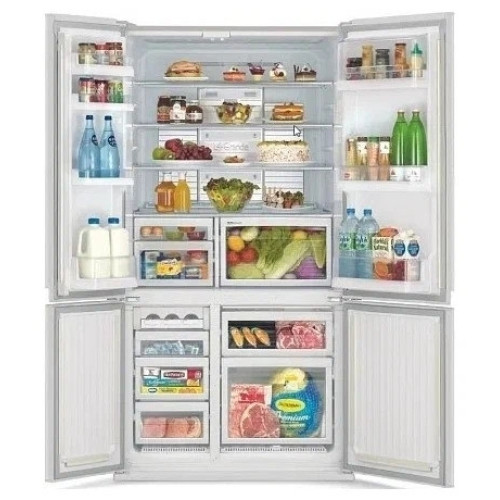 Mitsubishi Electric MR-LR78EN – вместительный холодильник French Door на 3 камеры (холодильная, морозильная и камера свежести «Витаминная фабрика») с 4 дверями общим объемом 710 л. В модели реализованы новейшие технологии Mitsubishi, которые обеспечивают бережное и длительное хранение продуктов при максимальной энергоэффективности. Интеллектуальная система Neuro Fuzzy измеряет температуру внутри и снаружи холодильника, анализирует частоту открывания дверей и автоматически подбирает оптимальный режим охлаждения. Два вентилятора Twin Fan Multi Air Flow осуществляют подачу охлаждённого воздуха непосредственно в ту камеру, где требуется понизить температуру. Система Surround Cooling System обеспечивает равномерное распределение охлаждённого воздуха по всем уровням холодильной и морозильной камеры. Система Fresh Sense автоматически увеличивает производительность компрессора при повышении температуры и помогает дольше сохранять свежесть продуктов, поддерживая оптимальную температуру во внутренних камерах. Система Витаминная фабрика в овощном отделении, имитирующая солнечный свет, повышает срок хранения овощей, зелени и фруктов, способствует генерации в них витамина С, сохранению полезных веществ. Благодаря адаптивному контроллеру влажности продукты дольше сохраняют свежесть и внешний вид. Внутренняя система очистки воздуха с фильтром Titanium, не требующая специального обслуживания, нейтрализует запахи и поддерживает чистоту воздуха внутри камер на протяжении всего срока службы холодильника. Морозильное отделение оснащено выдвижными полками, что упрощает размещение продуктов. Трехрядный автоматический ледогенератор в морозильной камере быстро приготовит необходимое количество льда. Антибактериальное покрытие стенок и прокладки дверей с применением серебра сокращает количество бактерий внутри холодильника на 99%. Полки из закаленного стекла выдерживают нагрузку до 100 кг. Светодиоды Led-подсветки обеспечивают яркое и мягкое освещение, при этом минимально расходуют энергию. Работу холодильника удобно настраивать с помощью сенсорного дисплея Smart Touch. Блокировка от детей обеспечивает безопасное сохранение настроек холодильника. Звуковая индикация оповестит, если вы не закрыли дверцу холодильника. В случае, если угол открытия дверей составляет менее 15 градусов, они закроются сами с помощью автоматических доводчиков.