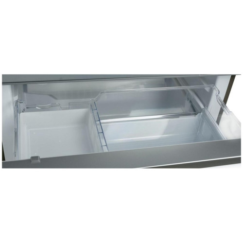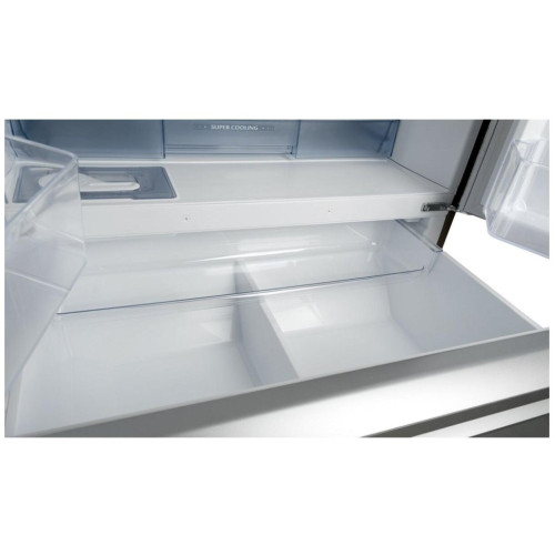 Многокамерный холодильник Mitsubishi Electric MR-LXR68EMG имеет глянцевое эмалированное покрытие, которое защищает от царапин и облегчает уход за прибором. Конструкция модели представляет собой 3 камеры разного назначения. Сверху расположено двухдверное холодильное отделение. Внутри него 3 полки и отсек с режимом Supercool Chilling, позволяющий хранить без заморозки мясо до 7, а рыбу до 5 дней. По центру специальная выдвижная камера «Витаминная фабрика» со специальной технологией сохранения полезных веществ и увеличения содержания витаминов в овощах, фруктах, салатах и зелени. Внизу расположена морозилка с полезным объемом в 94 л.