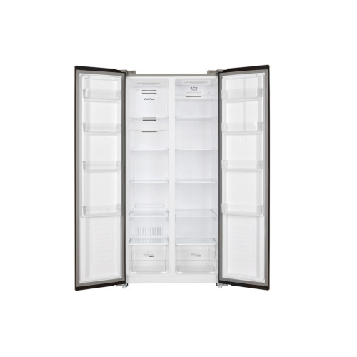 Холодильник SBS-647IGW незаменимый помощник на кухне с электронным управлением представлен в белом цвете и является мощным и вместительным холодильным агрегатом с функцией замораживания. Для хранения в нем продуктов предусмотрены 2 камеры с распашными дверями с внешними стеклянными панелями. Модель совмещает в себе стильный дизайн, отличные технические характеристики и высокие эксплуатационные качества. Общий объём составляем 477 литров, а на холодильную и морозильную камеры приходится 273л и 204 л соответственно. В холодильном отделении пространство разделено пятью большими полками и ящиком для хранения овощей, зелени и фруктов. На дверце холодильного отделения также предусмотрено четыре полки для хранения продуктов. В комплектации холодильника имеется 2 лотка для яиц. В морозильной камере также расположены пять полок и ящик, а на дверце предусмотрено четыре полки. Функции Суперохлаждение и Суперзаморозка позволят быстро опустить температуру до минимальных значений в каждой камере. Данная модель оснащена инверторным компрессором, что обеспечивает улучшенную производительность, пониженное энергопотребление и низкий уровень шума! Система размораживания Total NoFrost исключает потребность в ручной разморозке, соответственно, уход за холодильником WILLMARK SBS-647IGW будет максимально простым. Увеличенный гарантийный срок на инверторный компрессор составляет 10 лет, а общий гарантийный срок составляет 3 года со дня покупки! Основной цвет Белый Размораживание морозильной камеры / НТО NoFrost Размораживание холодильной камеры NoFrost Температура холодильной камеры, °C (+2) – (+8) Температура морозильной камеры, °C (-15) – (-25) Уровень шума, дБА 42 Хладагент, гр. R600a/52 Подставка для яиц Есть Форма для льда Есть Общий объем, л. 477 Общий полезный объем, л. 429 Полезный объем холодильной камеры 249 Полезный объем морозильной камеры / НТО 180 Количество камер 2 Количество дверей 2 Перенавешиваемые двери Нет Стеклянные панели Есть Нулевой зазор дверцы Нет Расположение морозильной камеры / НТО Слева Материал полок Стекло Полки в холодильной камере 5 Ящики в холодильной камере 1 Ящики/открытые полки в морозильной камере/НТО 5 полок, 1 ящик Полки на дверце в холодильной камере 4 Полки на дверце в морозильной камере 4 Дисплей Есть Вид дисплея Внешний Тип управления Сенсорный Индикация температуры Есть Инверторный компрессор Есть DualInverter Есть Количество компрессоров 1 Дополнительно Многопоточная система охлаждения, режимы суперохлаждение, суперзаморозка, Smart, отпуск Напряжение питания, В/Гц 230/50 Энергопотребление, кВтч/год 381 Класс энергопотребления A+ Климатические классы SN/N/ST/T Габариты изделия Ширина*Глубина*Высота 836*620*1800 Габариты в упаковке Ширина*Глубина*Высота 890*664*1860 Вес 75 Вес в упаковке 83 Гарантия 3 года на изделие, 10 лет на компрессор Длина сетевого кабеля, см. 150